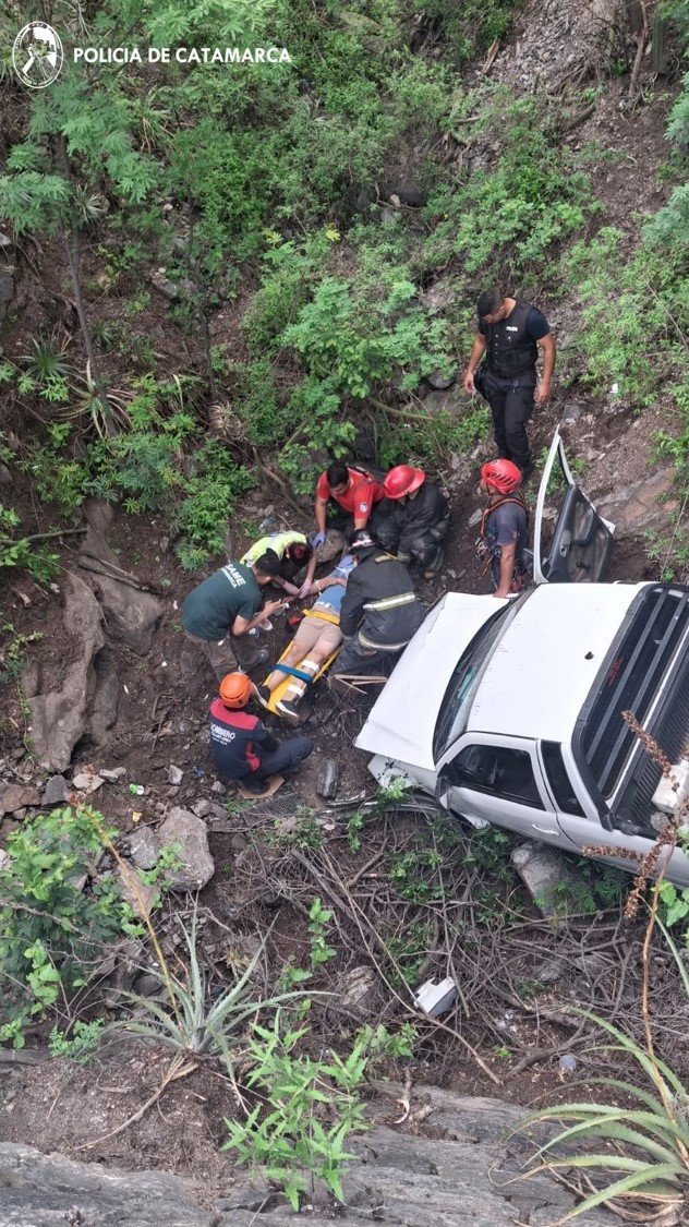 Cabe mencionar que, tras realizar tareas de su especialidad, efectivos de la Dirección Bomberos de la Policía de la Provincia lograron rescatar al conductor, quien quedó atrapado en el interior del rodado, y finalmente, como consecuencia del siniestro, ambas personas fueron asistidas por personal médico del SAME y trasladadas al Hospital San Juan Bautista de esta Ciudad Capital, por lo que intervinieron numerarios de la Comisaría de Santa Rosa, que corresponde por jurisdicción, en tanto que Sumariantes de la Unidad Judicial N° 10 labraron las actuaciones de rigor.